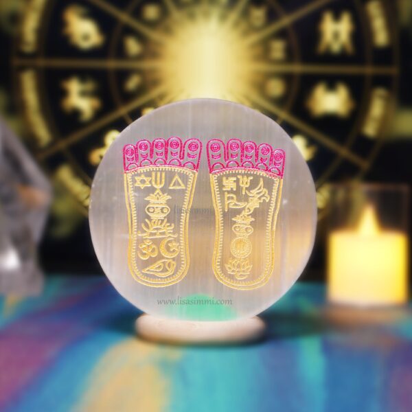 The Selenite Plate with Lakshmi’s Feet symbolizes the arrival of wealth, fortune, and continuous growth in your life.